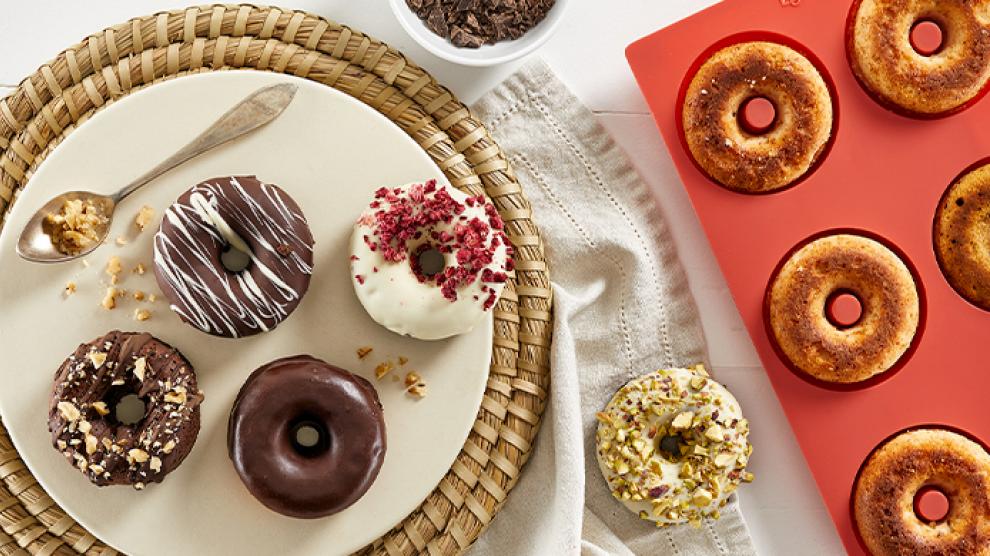 Descubre como preparar unos deliciosos dónuts caseros con recetas como dónuts red velvet, dónuts clásicos o incluso dónuts carrot cake. ¡Incluidas en el recetario del producto y en nuestra